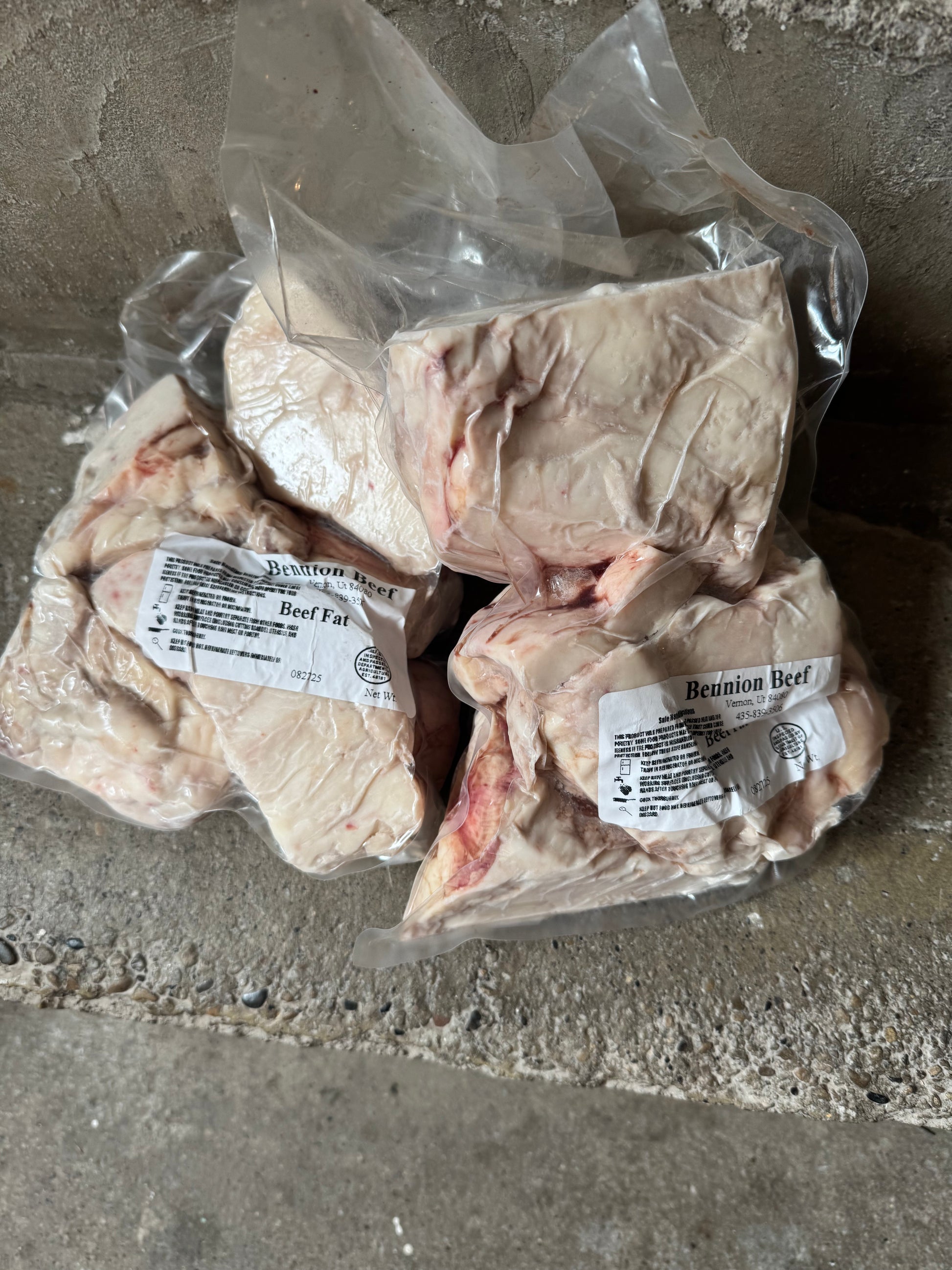 Our beef fat is pretty clean so tallow yield should be higher than regular, more "dirty" fat (more pieces of tissues). Each package of beef fat averages 1.5-2lbs.